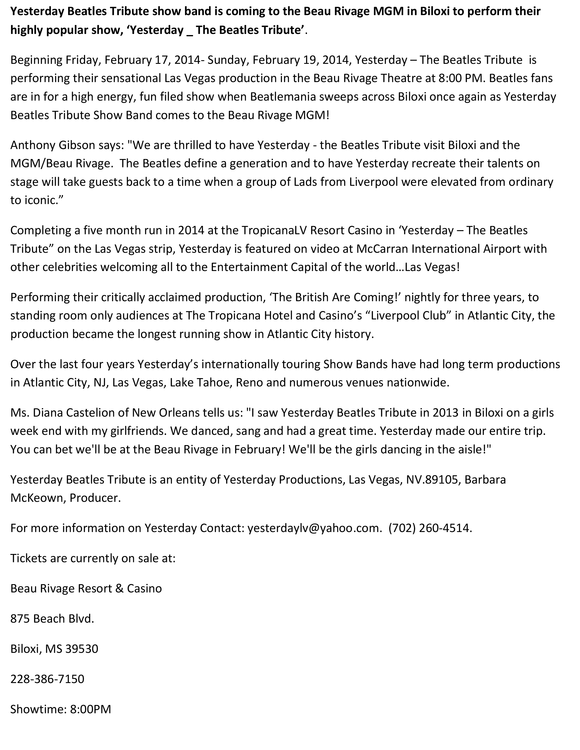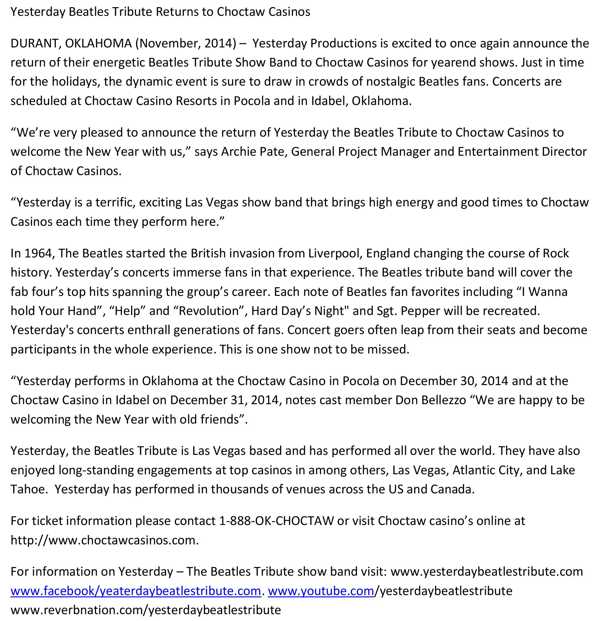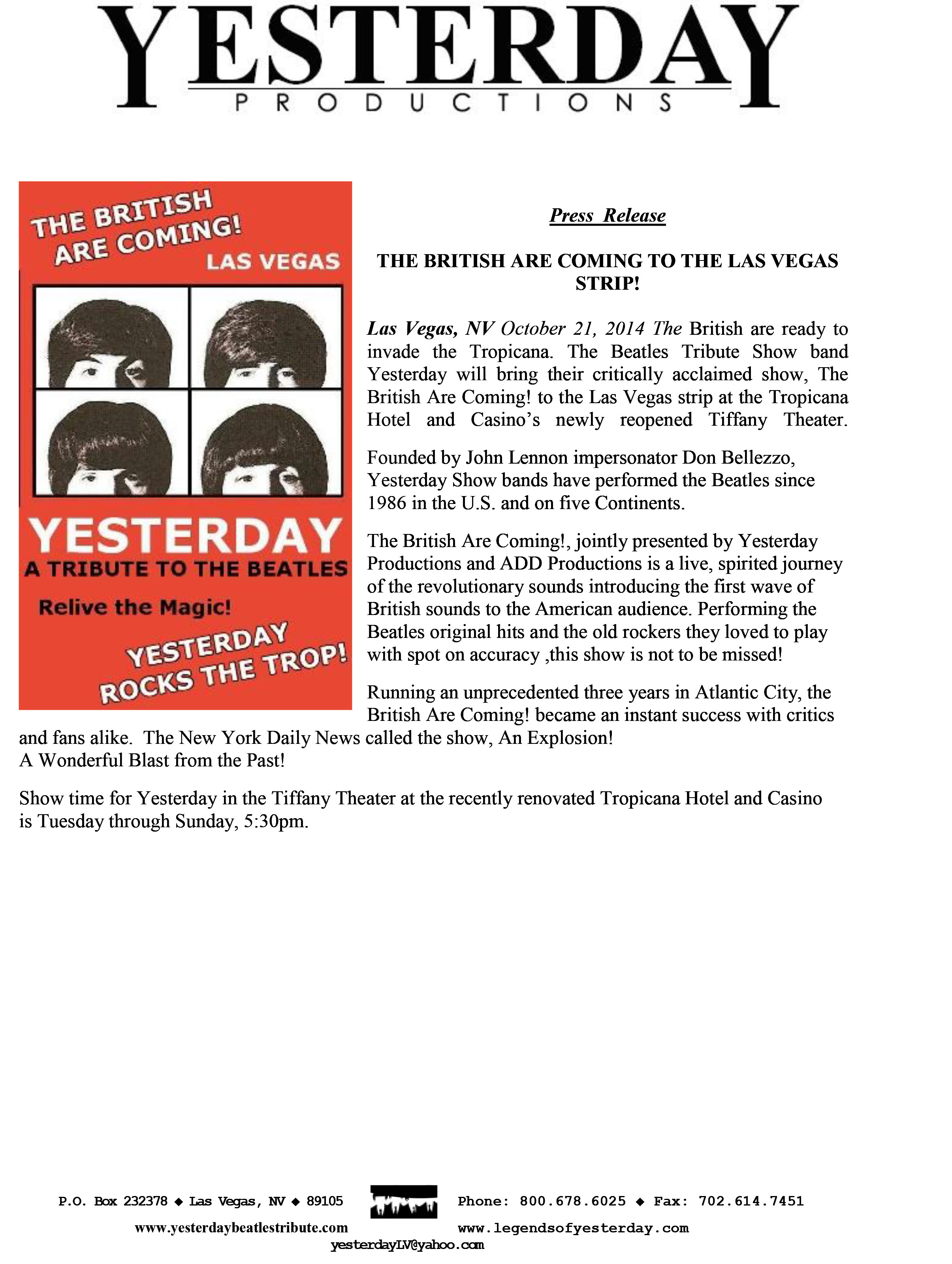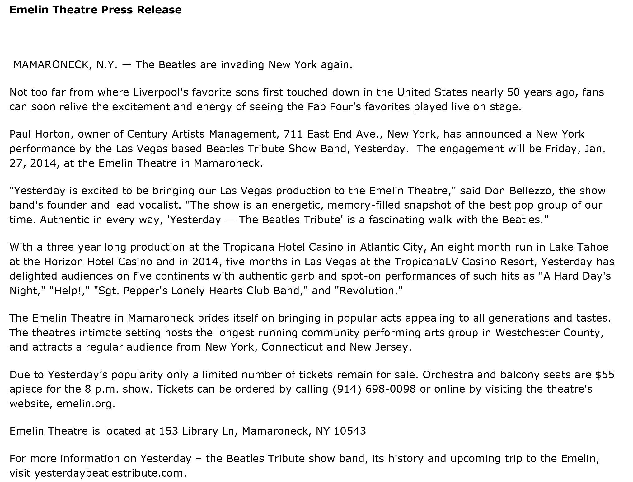 - Yesterday Beatles Tribute Band General Press Release