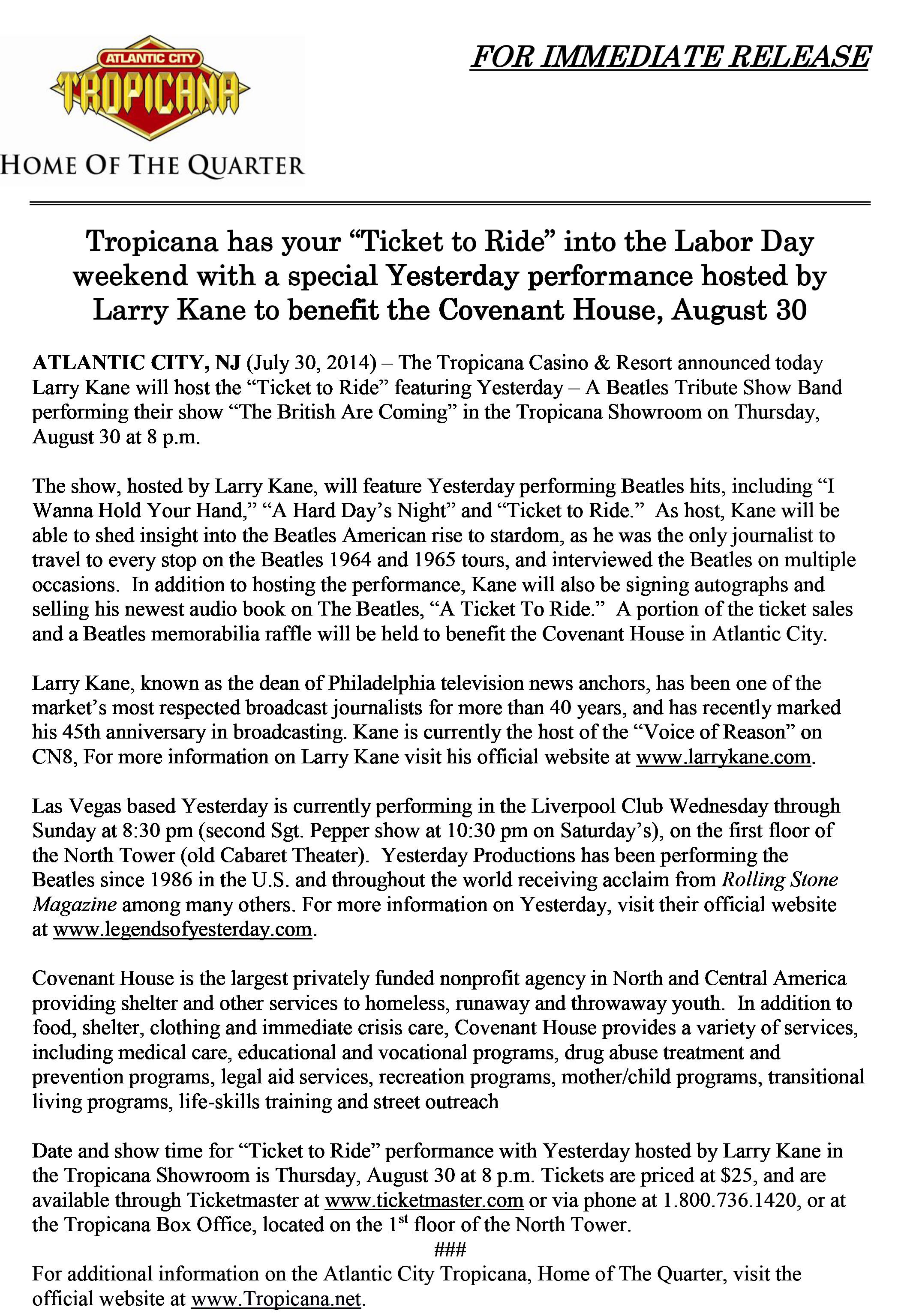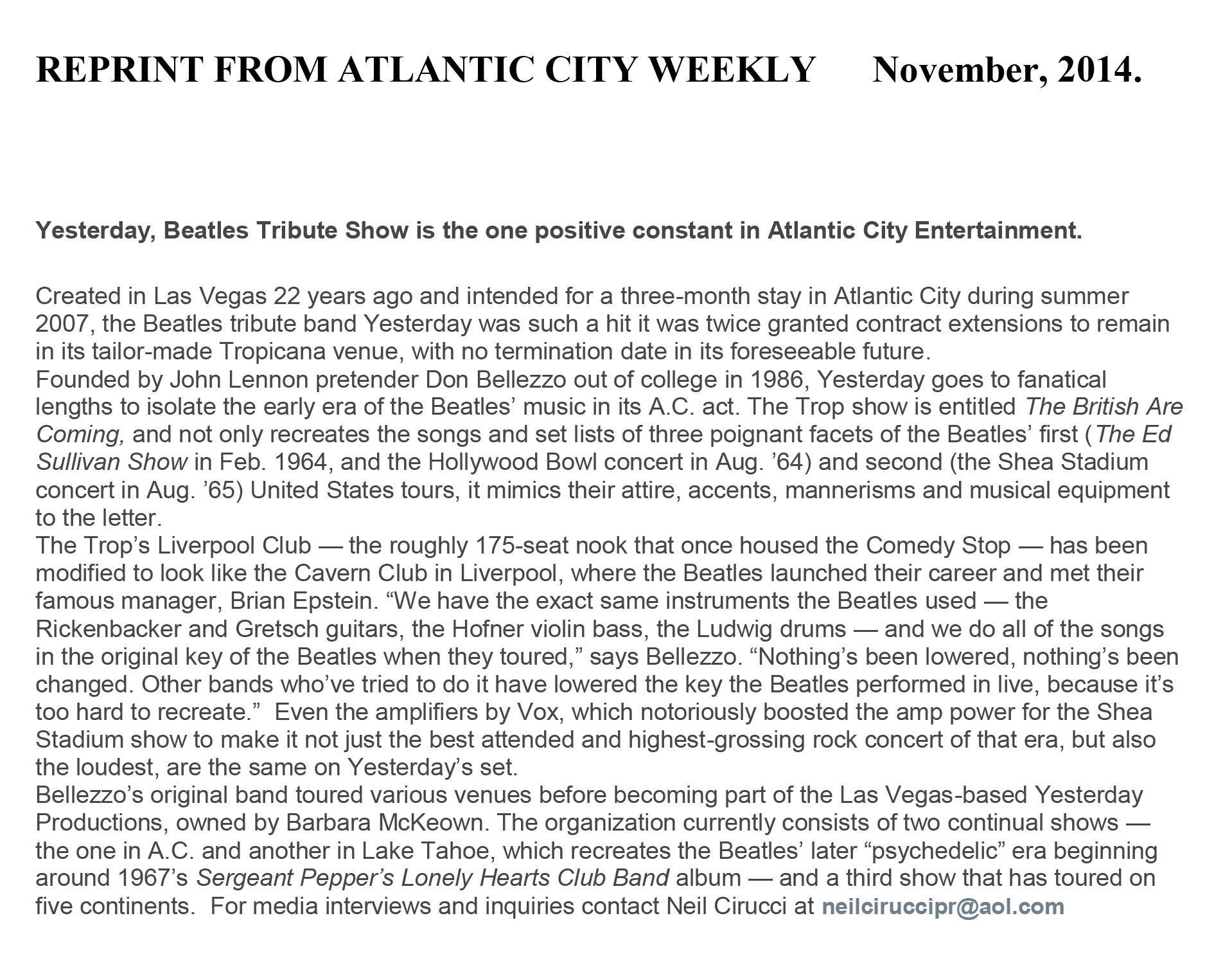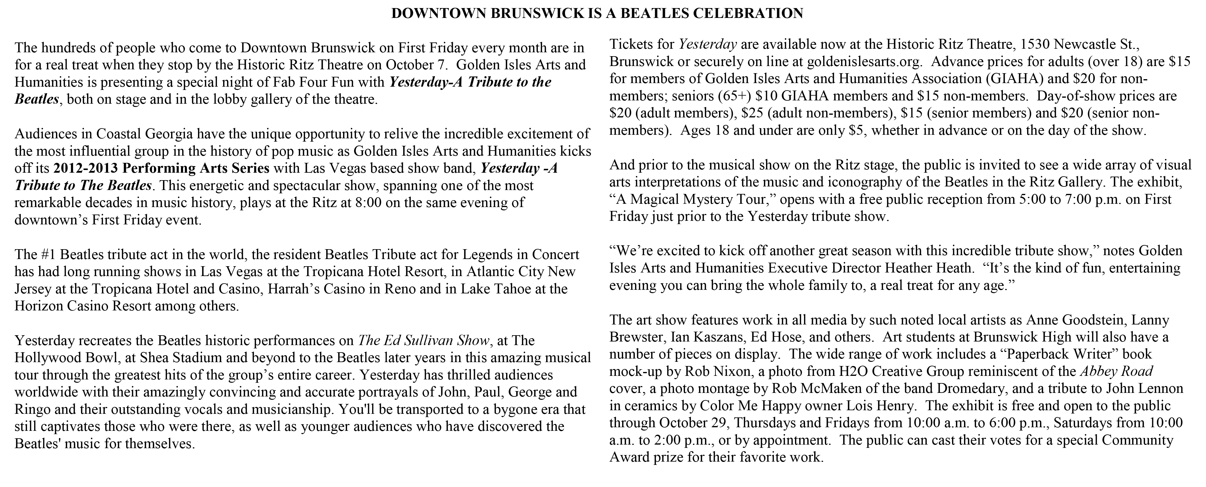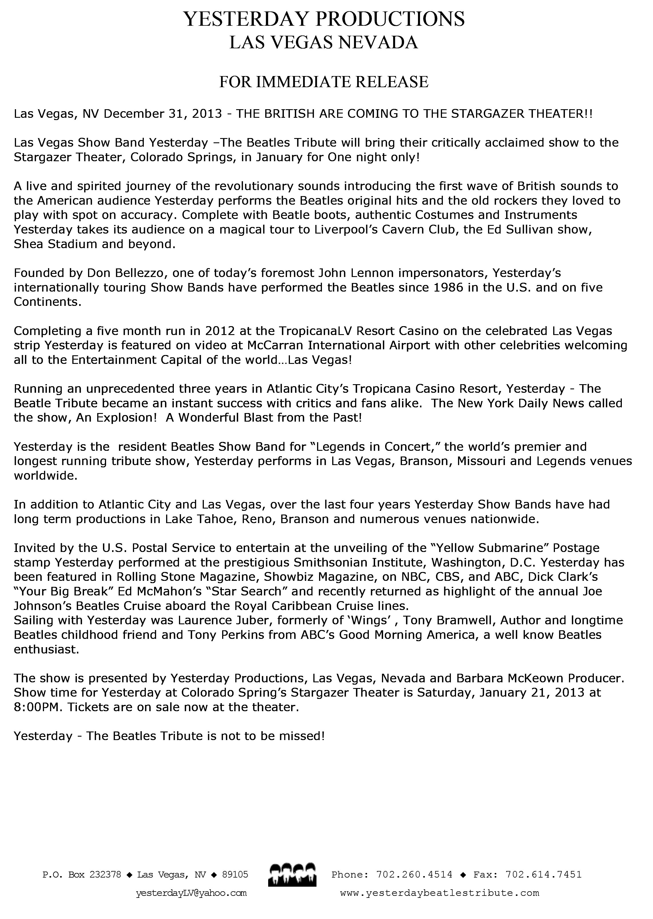 - Yesterday Beatles Tribute Band General Press Release